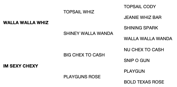 SIRE: WALLA WALLA WHIZ (2003). $187,820: NRHA Open Derby Champion, NRBC Open Derby 3rd, NRHA Open Futurity finalist, Wimpys Little Step Open Derby Reserve Champion, Tulsa Reining Classic Open Futurity Champion. A 2022 QData Top 10 Sire of Reining Money-Earners; a QData Top 15 All-Time Sire of Reining Money-Earners. Sire of 350 money-earners, $4,252,299, and earners of 2,811 AQHA points, including AMERICASNEXTTOPGUN ($345,893: NRHA & NRBC Level 4 Open Derbies’ Champion), SHESOUTTAYOURLEAGUE ($267,929: NRHA Open Futurity Champion), AMERICAS SUPERMODEL ($232,226: 3rd NRHA Open Futurity, AQHA World Champion Junior Reining Horse), ISNT SHE PERFECT ($170,509: NRHA Open Futurity Reserve Champion), MADE IN WALLA ($133,209: European NRHA Open Futurity Champion), ARC WALLA DUN DID IT ($118,924: European NRHA Open Futurity Champion), AMERICASNEXTCOVRGIRL ($93,928: European NRHA Level 4 Open Futurity Reserve Champion), WALLA WHIZ AFFAIR ($75,460 and 173.5 AQHA points: top 10 NRHA Open Futurity, Superior Reining).
